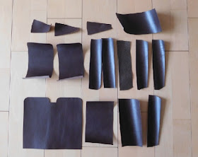 今回使う革はなんとコードバンです。いいところを選ぶと取れる範囲はかなり限られてきますね。なんとか全パーツを取ることができました。