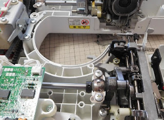 こちらもブレスレットですが金具の形が少し違います。糸はスパン糸60番なので細いですが、家庭用ミシンでも作れるということで選択しました。吊り定規のようなガイドは付けられないのでマグネットで直線を縫っています。よく見ると上記と同じようにグラデーション糸を使っていますが、分かり難いです。
